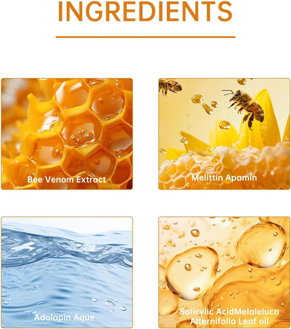 Natural Ingredients: It contains Bee Venom, Glycerine, tea tree and other natural ingredients.